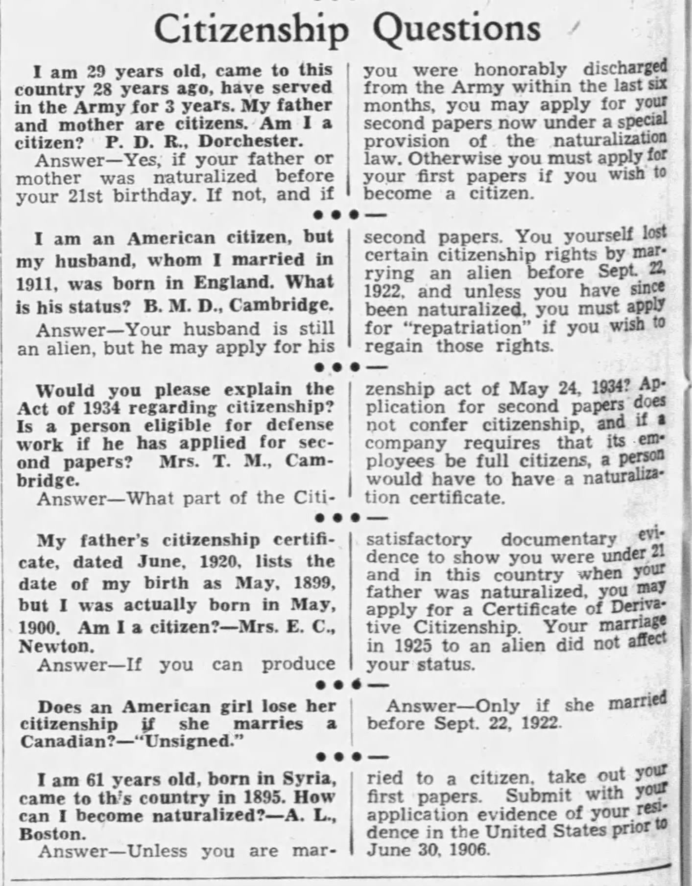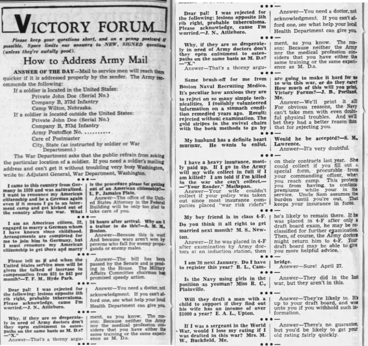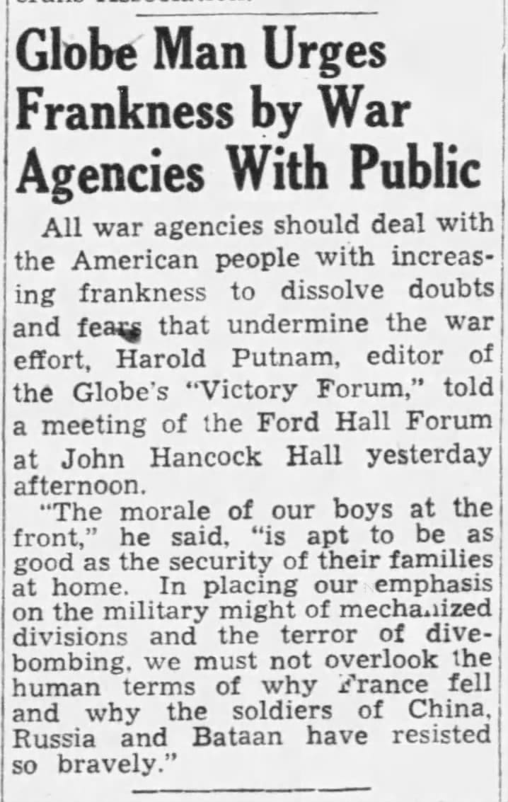 Here is the aforementioned Victory Forum by Harold Putnam for Monday, April 13, 1942 - page 8 of the Boston Globe.