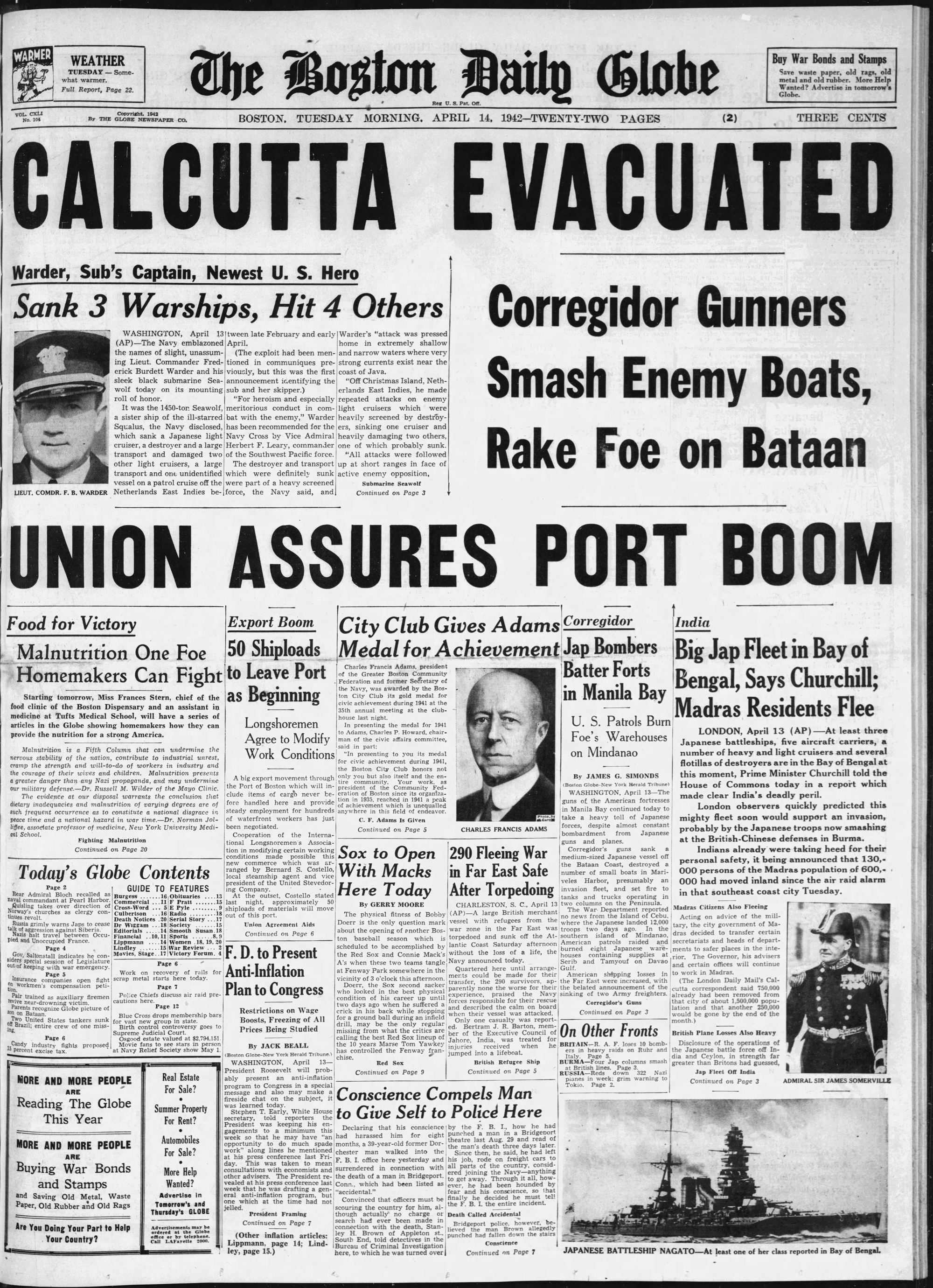 Per the paper, President Roosevelt is consulting with economists and advisors on an anti-inflation plan. A real one. There is no communication from Bataan or Corregidor per the U.S. War Dept. as Japan continues to batter the region. Bataan is a misery. War is just a tragedy. Recall that during this time, India is demanding their independence and freedom from Great Britain so that complicates everything. It hits home too.