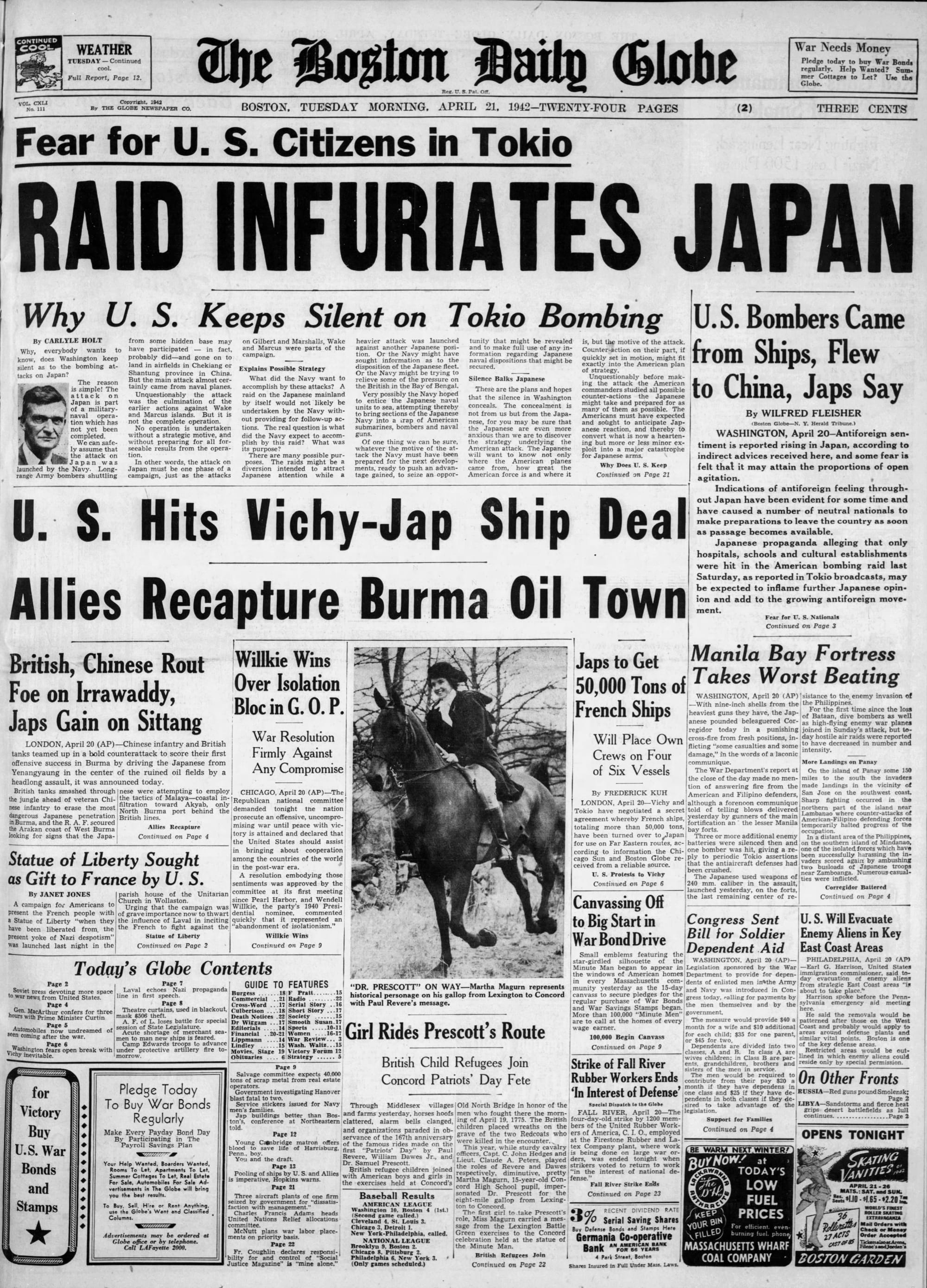 Also, did you know we bombed the crap out of Japan over this past weekend? Click this link for: my post from April 18, 1942.