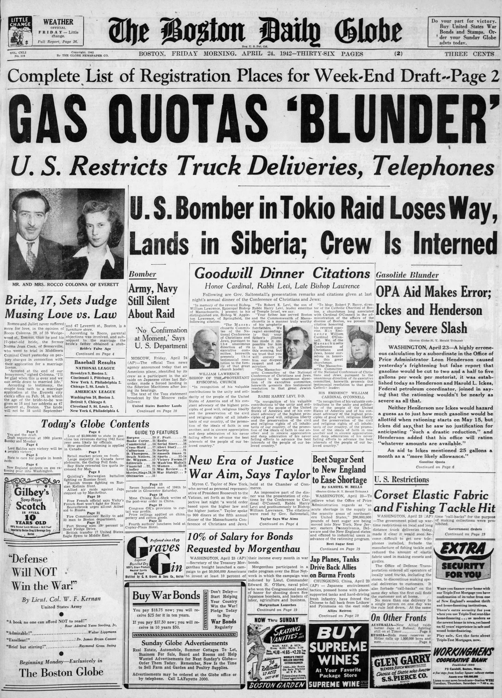 More men being called up for the draft while they figure out how they're going to ration gas. More war, more bombs but check out the story of the 17 year old bride. She's almost 18 but she committed perjury in order to get married. I don't think she gets in trouble but look at that guy - does he look 29??? He can't be 29, can he?? I do hope they lived happily ever after.