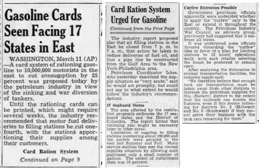 Guess who's setting up gas rationing cards? It's the oil industry. As shown on the front page, gas rationing will be massive due to the war requirements. The focus will be on the war effort so folks are going to be in for some challenging times.