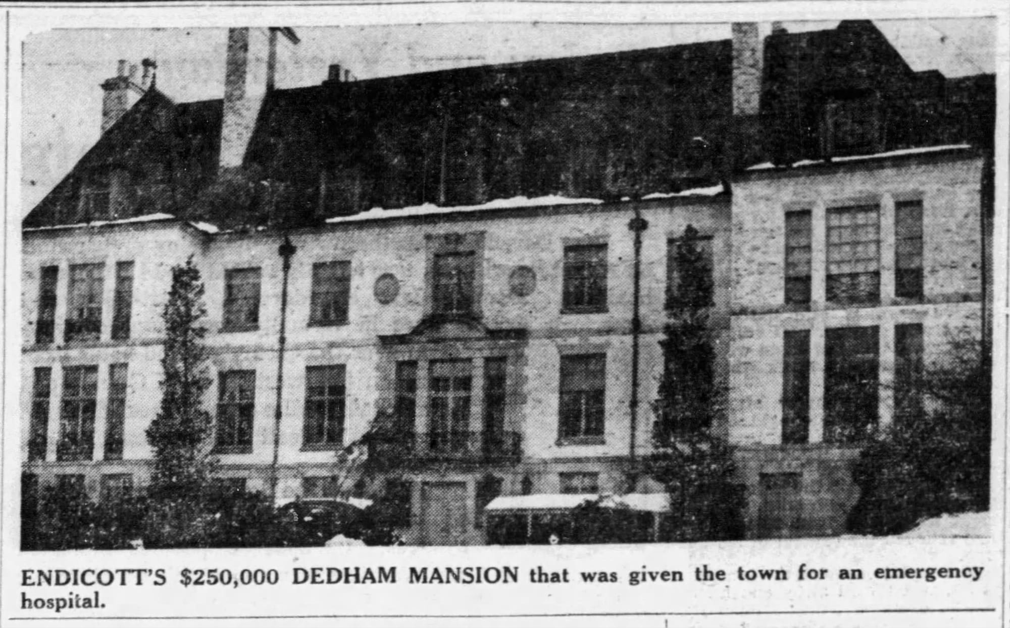 Regarding the story of the Dedham Hospital - a $250,000 home in 1942 is a palatial mansion. Donated for the duration of the war as an emergency hospital, this home belongs to H. Wendell Endicott, a retired shoe manufacturer and head of the Boston Opera Association. By the way, you can get a lovely 6 room home in Dedham for $4950 with 3 bedrooms, bath, hot water and sun porch. Here's the pic from page 4: