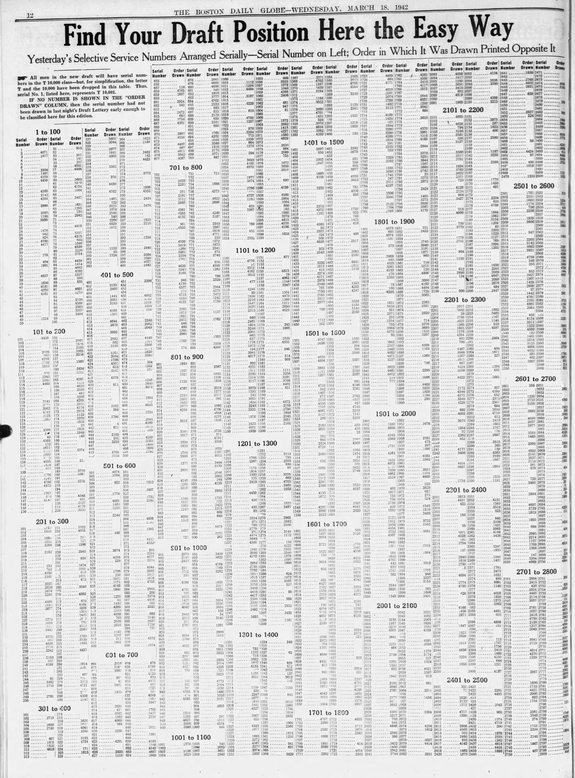 So the lottery started on March 17 and ended March 18 after 9,000,000 names had been drawn. You can use the following to determine your fate? This is just a partial list. Mostly, young men are fairly eager to get in action and respond to the attack. We'll find that Joe was not one of those.