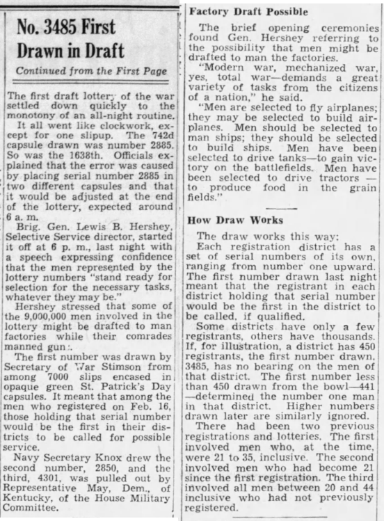 March 18, 1942 - Lottery/ Parade