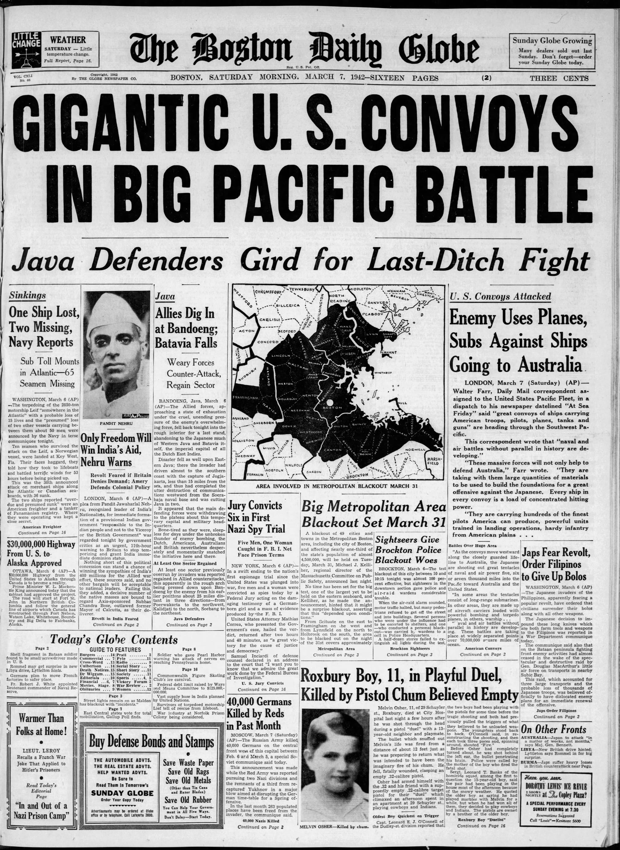 Meanwhile, the war is raging. The battles continue and Boston plans for a blackout test. The jury convicts 5 men and 1 woman of spying for the Nazis and they will spend a long time in prison. Knowing he's going towards this war has got to be worrisome to say the least. I hope he was able to really enjoy the time before draft day - April 1, 1942. That's when this thing will really get going. Stay tune :)